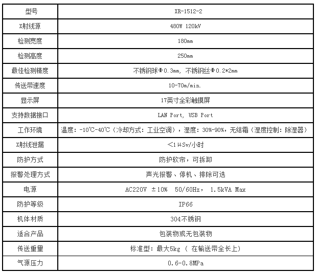 XR-1512-2 雙光源系列X射線異物檢測(cè)機(jī),可快速檢測(cè)密封罐頭、玻璃瓶中混有的玻璃渣、石子、金屬異物,對(duì)位于密封玻璃瓶、罐頭中不同部位的異物均有高識(shí)別率。雙套成像系統(tǒng),雙視角,橫照檢測(cè)方式,有效規(guī)避檢測(cè)盲區(qū)