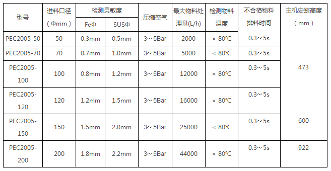 PEC2005B2液晶顯示數(shù)碼型金屬分離器專門用于檢測精度要求高的食品及醫(yī)藥保健品行業(yè),采用德國技術(shù)制作,具有超高靈敏度,性能穩(wěn)定可靠,可快速剔除含有金屬異物的產(chǎn)品。