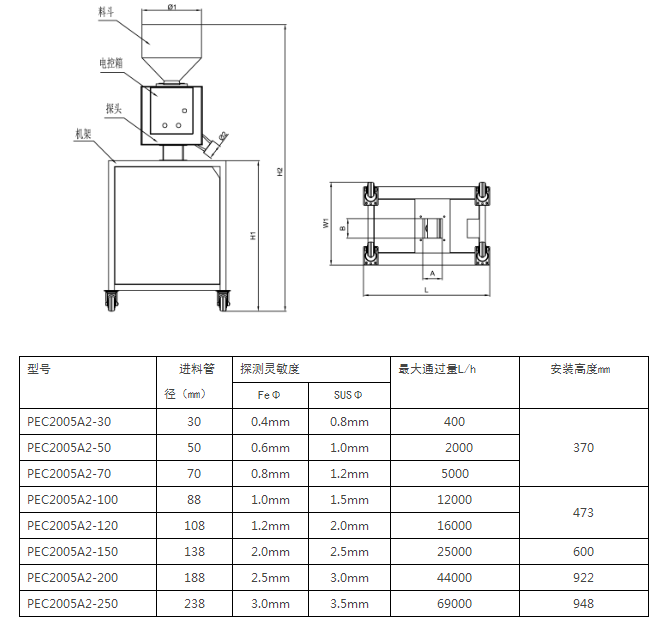 2. 外殼和直接接觸產(chǎn)品部分的金屬材質(zhì)都采用不銹鋼304制造;