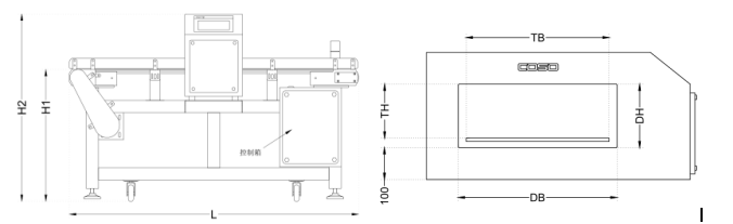 TB:檢測(cè)通道可通過寬度             L:輸送帶長(zhǎng)度