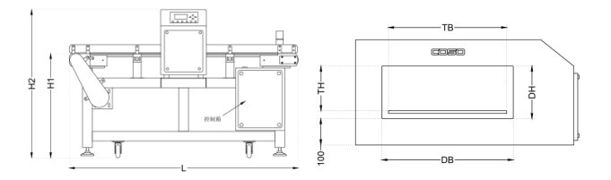 DB:檢測通道開口寬度 H1:輸送帶面距離離地面高度