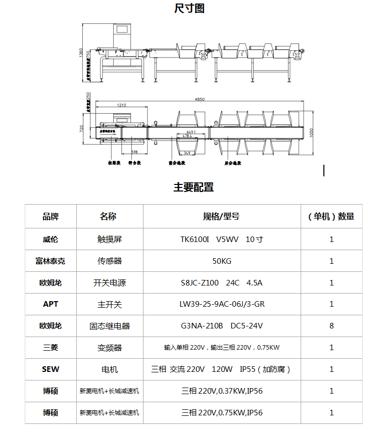 三.設(shè)備尺寸圖與主要配置: